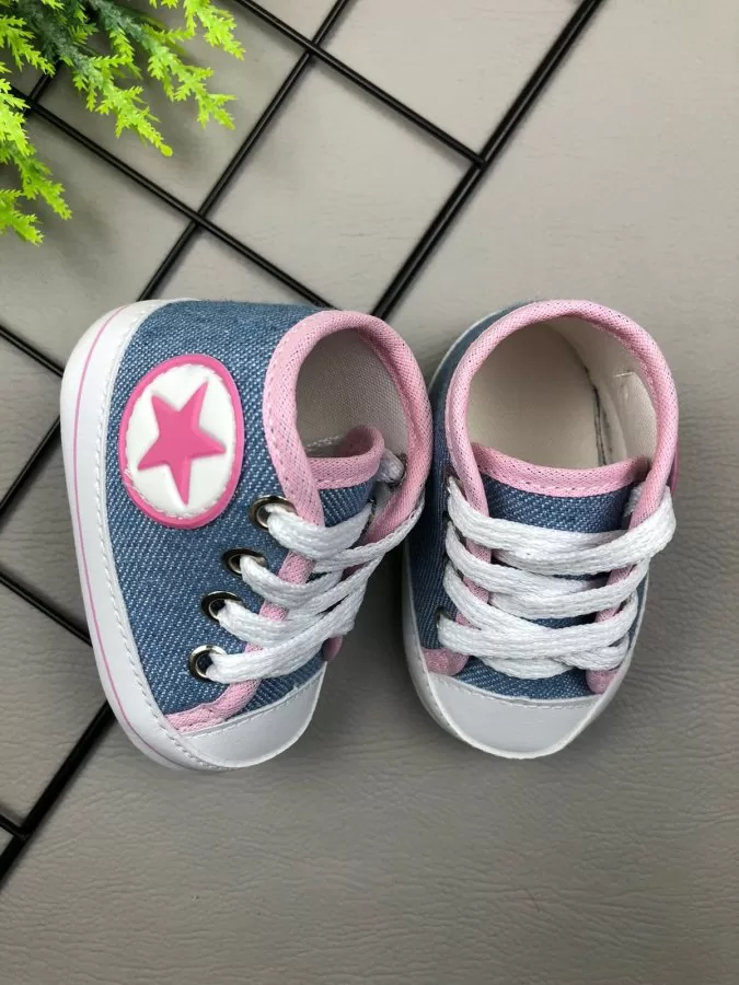 Nosso Tênis para Bebê Cano Alto com Estrela Jeans Claro e Rosa são os queridinhos das mamães, super estilosos com material macio, permitindo que o(a) bebê esteja sempre confortável, e o melhor de tudo não cai do pé. Também ajuda a compor um Look Perfeito e Fofinho para seu Baby. Perfeito para qualquer ocasião. Nossos calçados trazem praticidade para as mamães.