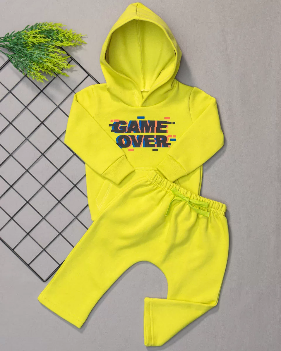 Nosso Conjunto de Moletom Game Over é composto por um Moletom produzido com Moletom Felpado, peluciado por dentro. Contém Bolso Canguru na parte da Frente e Capuz na Parte de trás, com Ribana na barra e nos punhos.E por uma Calça Saruel com elástico rebatido. Nosso conjunto é ideal para os dias de frio, para manter seu Bebê quentinho e muito confortável. Não contém elastano na sua composição