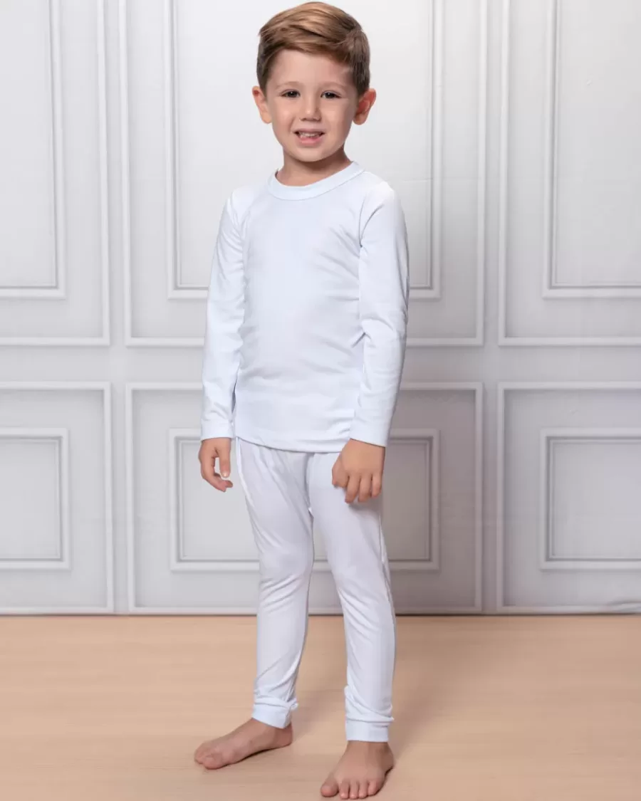 Nosso Conjunto Infantil Térmico Branco é produzido com material Térmico, peluciado por dentro. Perfeito para os dias mais frios, como segunda pele, composto por camiseta manga longa e calça com barra e elástico na cintura, sem estampa. Veste meninos e meninas, aquecendo nos dias mais frios do inverno. Custo benefício excelente para deixar as crianças bem protegidas e complementar a vestimenta de frio, inclusive o uniforme. Uma peça macia, confortável e quentinha. Além dessa cor temos vários outras em nosso site.